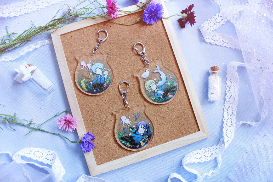 Ensemble Stars acrylic keychains featuring the Marine Bio Club members Kanata, Kaoru and Souma!