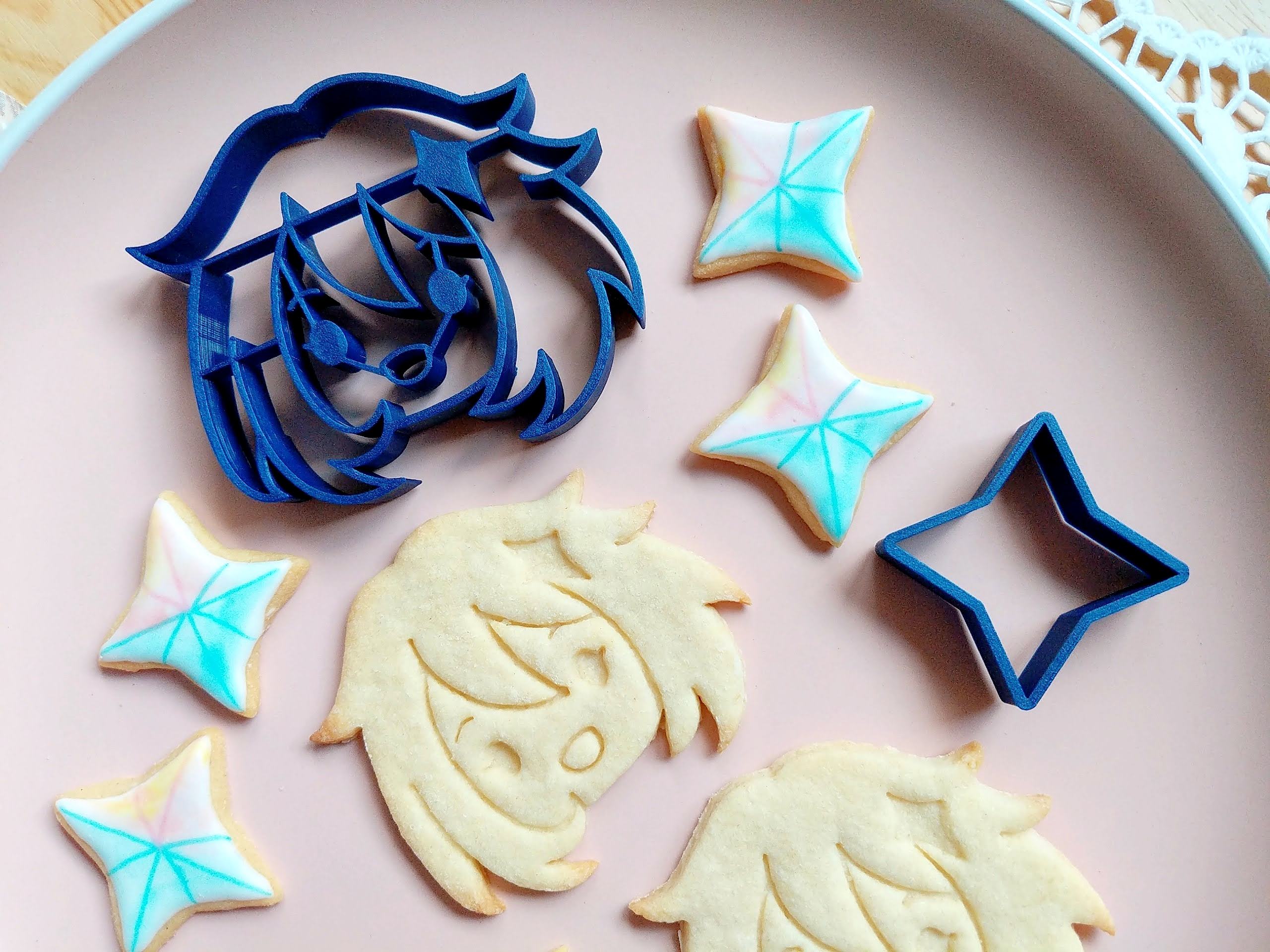 3D printed cookie cutters of Paimon from Genshin Impact and the beloved and infamous primogems