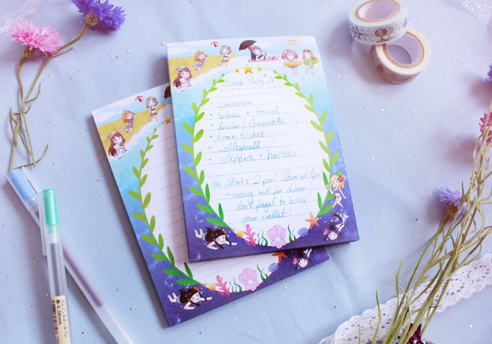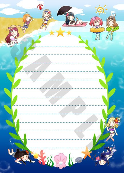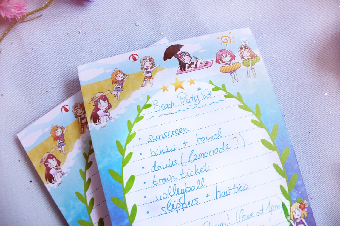 Love Live! notepad featuring all members of Aqours in their first bikini cards outfits in a refreshing Summer & Sea setting!